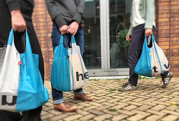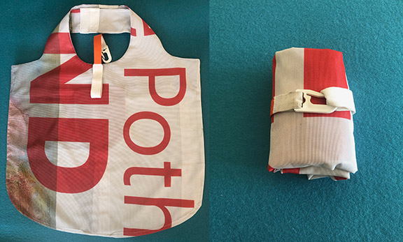 De flagbag is een door Olivera ontwikkelde draagtas op basis van gerecyclede materialen. Elke tas is handgemaakt en uniek. De sterke stof komt van gebruikte vlaggen van musea die voor elke tentoonstelling nieuwe vlaggen laten maken. De flagbag is licht en kan door zijn handige formaat altijd met u mee, zodat u geen plastic tasjes meer nodig hebt. Hiermee draagt u bij aan een goed milieu. De verkoopprijs is € 17,50.